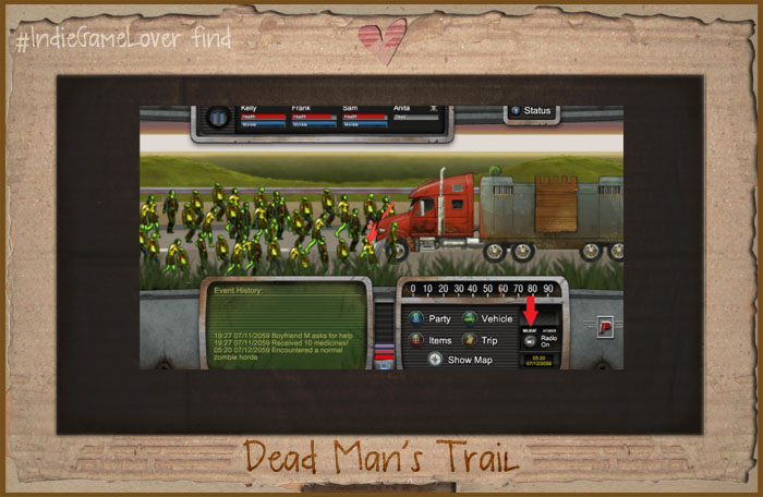 "Dead Man's Trail is a zombie survival game for PC, Mac, and Linux in the tradition of classic travel survival games with some new twists. The game recreates the drama of modern zombie fiction by making team members core to the player's travel progress through randomly generated cross-country journeys. Each have their own job that will help the party along their journey: firearm expert, melee expert, paramedic, mechanic, and others. These characters must be kept happy and healthy through randomly placed obstacles and loot supplies in procedurally-generated 3D environments. Each journey the player takes in Dead Man's Trail creates different and highly replayable undead drama."
