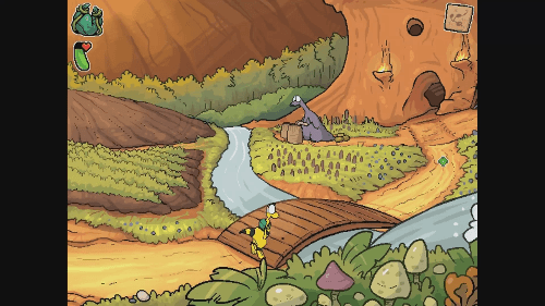 "Zniw Adventure is a 2D, traditionally animated point and click adventure game with educational content, starring a young, yellow, female dinosaur having all sorts of adventures in the prehistoric land of Polisemia."